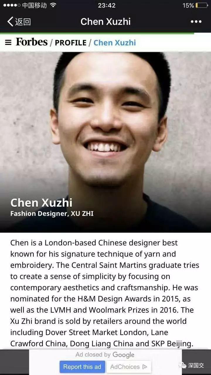据福布斯(中国)报道,2017年亚洲30岁以下青年才俊榜(Under30Asia),有300位年轻创新者、创业者和领军人物上榜。这些青年才俊正在挑战常规,影响当今世界。他们来自各行各业,都在推动创新。这些千禧一代的年轻人利用科技为所在行业带来颠覆性变化,为所在社区提供力量,为跨越文化壁垒构建桥梁,他们的故事引人入胜。【校友简介】陈序之Daniel,深国交2011届毕业生,入读伦敦艺术大学中央圣马丁学院,时装设计专业。深圳国际交流学院2011届毕业生陈序之Daniel,荣登福布斯2017亚洲30岁以下青年才俊榜。陈序之校友是伦敦的中国设计师,自创奢侈品时装品牌“XuZhi”。XuZhi是一个以伦敦为基地的女装品牌,作品充份体现美感和工艺的平衡性。相关阅读:1、30岁以下精英榜深国交2