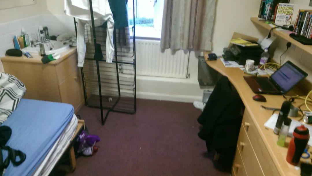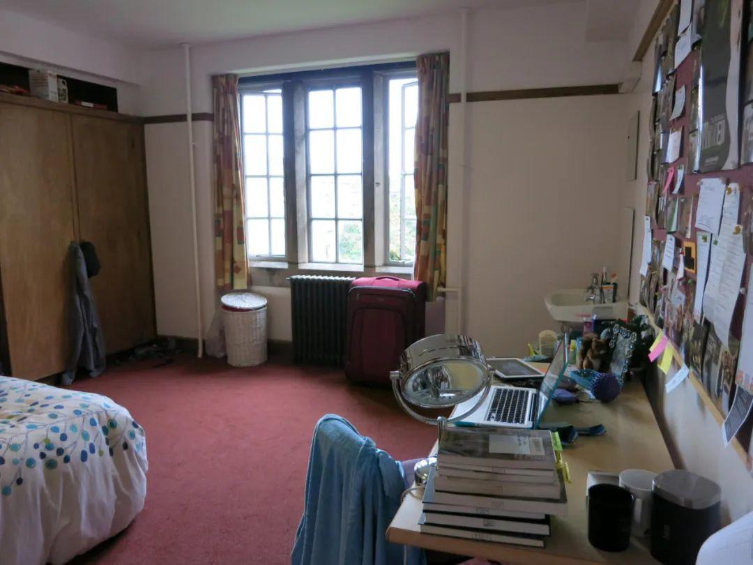 顺便附带宿舍区环境介绍和房租价格,给即将申请的同学一些参考。(由于房租会跟随住宿房型/位置/是否包餐/租住时长/学习阶段的不同而有所变化,本文列举的价格仅供参考,以学校官网为准)这间宿舍位于爱大一个比较大的宿舍区Pollock Halls,这里曾是1974年英联邦运动会的运动员村。这个房型的房间面积不大,没有独立卫生间,但有一个小洗手台,洗漱镜和全身镜都有(给满分)。这个房间位于宿舍楼的一楼,生活很方便,但有学生晚归的时候会比较吵。另外有些学生会在楼外抽烟,导致开窗有时会不太方便...这间宿舍来自杜伦St. Cuthbert's Society学院,位于Parson's field site(这片宿舍区可容纳360名学生,本科生也有研究生)。房型跟周正,窗外颇具英国小镇(乡村)的感觉,宁静安逸。例如这间剑桥大学Robinson College的单人独立卫浴宿舍。和前面两个标准化宿舍相比,这个房间在英国大学宿舍里算是宽敞的了,还自带一个不算迷你的阳台,写字台面朝室外的绿意盎然,赶论文的效率都提高了呢~幸运的是,利物浦大学 Greenbank halls 里的不少宿舍都自带阳台,虽然很小,但偶尔也能晒晒被呢~这间宿舍来自亚伯大学,不带卫浴的单人间,房间面积算是比较宽敞的。这间宿舍位于Trefloyne宿舍区,从外面看长这样。这个宿舍同样来自亚伯大学,是位于Alexandra Hall的独立卫浴房间。这个房间的房型叫 CLASSIC ENSUITE WITH ENHANCED VIEW景观房!窗外是无敌海景或山景...是的,海景!因为Alexandra Hall 宿舍区就在海边!慕了...7.房租(共用卫浴):6500~7500英镑/学年