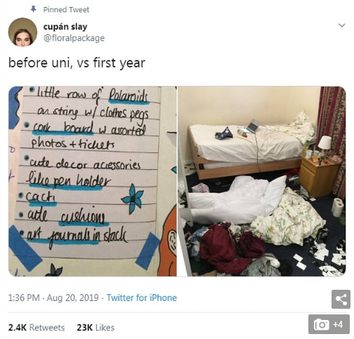 突然更新第二季,是因为看到一条让CA爆笑的推特...牛津大学的学生@floramargarine在推特上分享了大学宿舍不那么光鲜亮丽的现实。墙上挂着拍立得照片...
