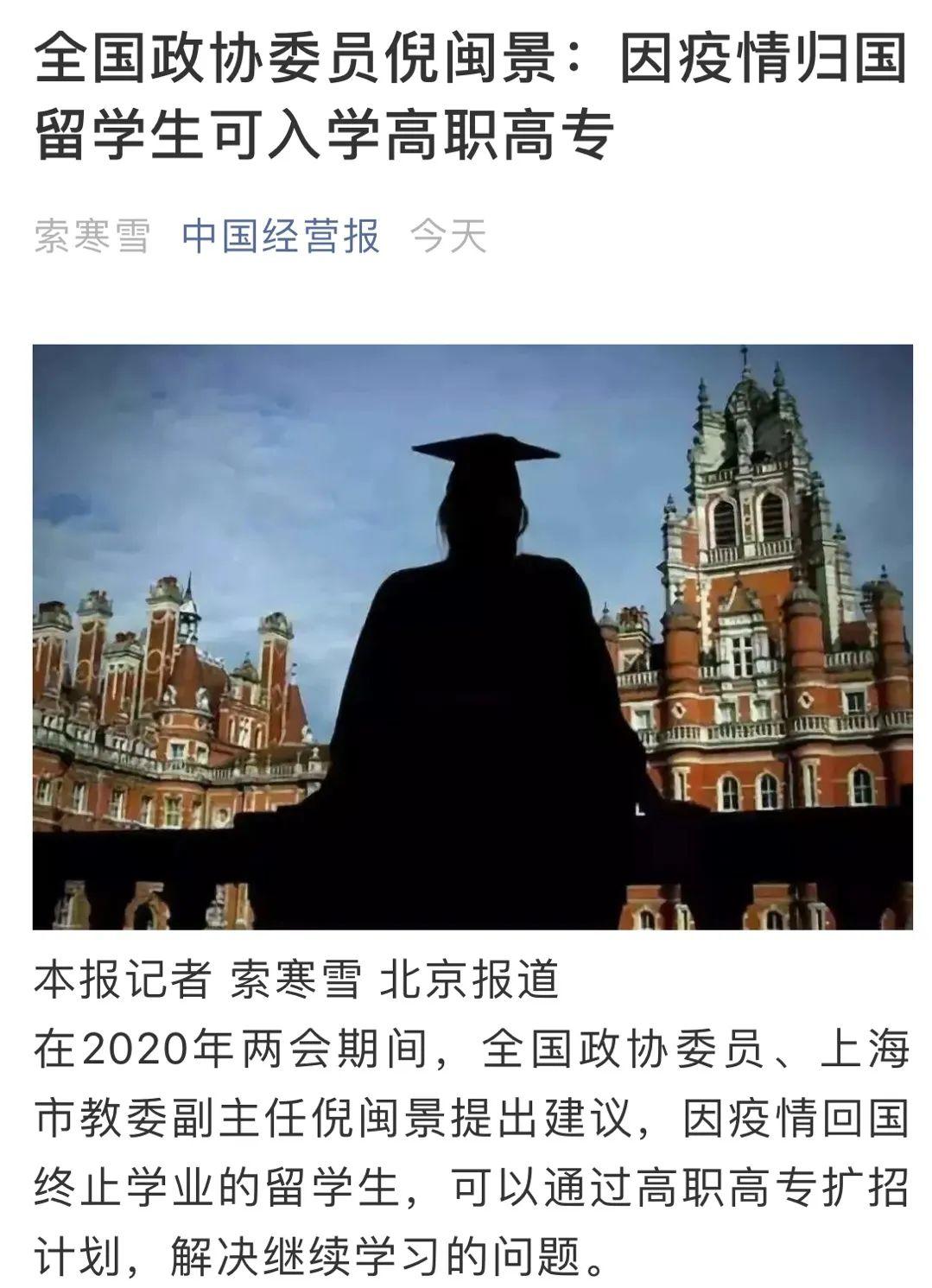 一是全面开放高职高专学校,对于高年级学生采取降一年级直接入学,进入相关专业的办法。未满1年的归国留学生,可以通过高职高专扩招计划,解决继续学习的问题。