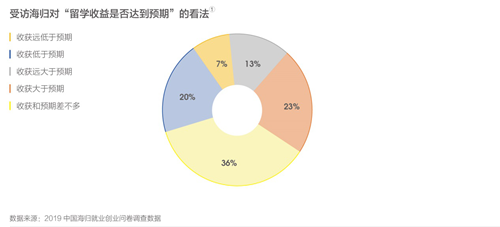 对于留学生来说,当初留学主要目的之一就是希望回国能够获得较高的收益回报。其中,受访海归中近四分之三的人认为留学收益能够达到预期。