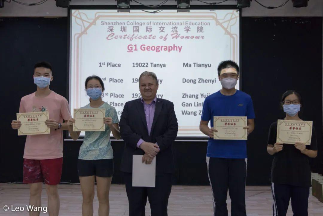 最后就是最最激动人心学术奖了。因为深国交提倡自主选课,每个人的课表都不一样,所以只在每学年期末进行单科前三的颁奖。获奖的同学们有序地登台亮相,从院长手里接过奖状,接受大家热烈的掌声,这是收获荣誉的时刻,也是下一阶段攀登的起点。