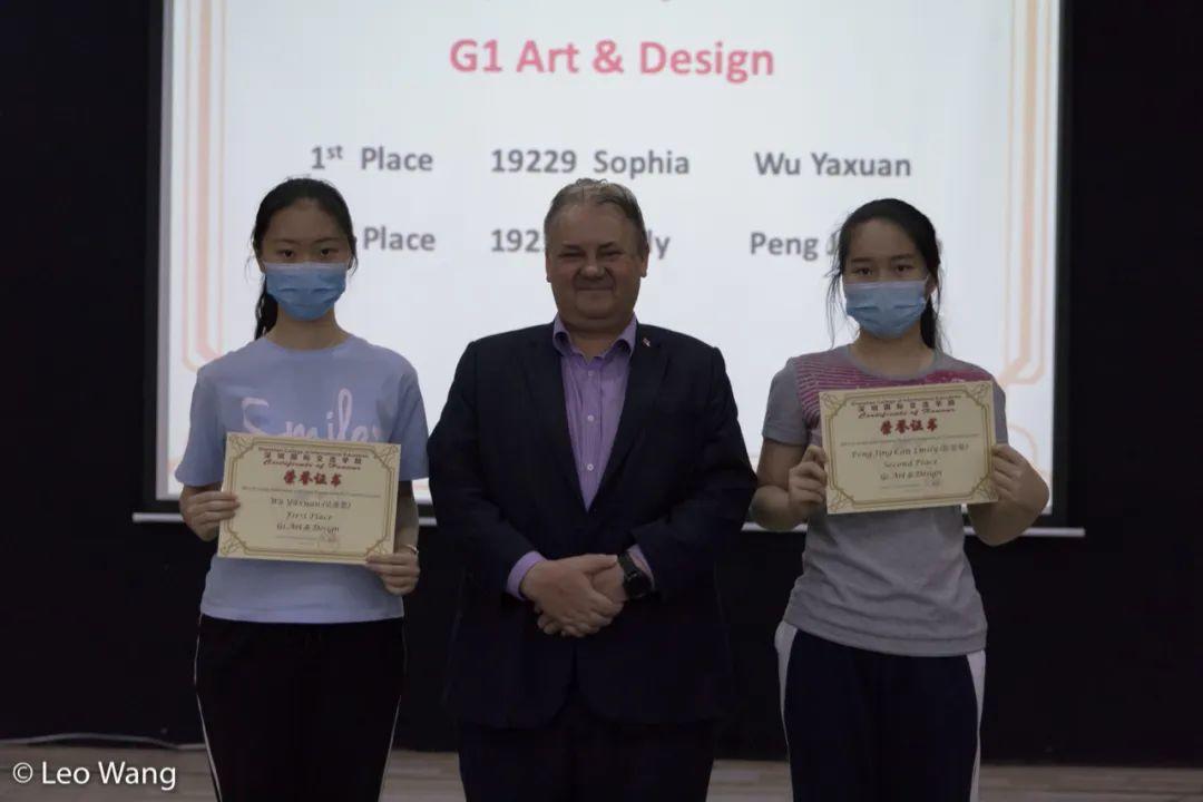 随后,学校表彰了此次USAD美国十项全能比赛中表现特别优异的同学:段凌同学荣获三块金牌,分别是科学金奖、文学金奖和社会科学金奖。还有我们的孙雅涵同学拿到了面试铜奖。深国交USAD的代表队伍在本次中国赛中共收获了9个学术及非学术奖项,也是广东省获得金牌数最多的队伍。