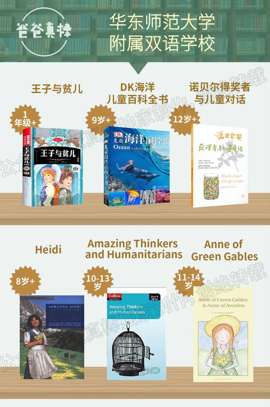 为帮家长们找到最合适孩子读的书,继2019年最热门暑假书单后,“爸爸真棒”打听到沪上15所知名民办双语学校——平和、包玉刚、赫德、宏文、德闳、华师双语、惠立、浦东万科、协和(万源、尙音、浦东)、诺德安达、康德、耀华临港、青浦世外——热门中英文书单,揭秘这届小初学生最爱什么书,暑假买书不用愁!