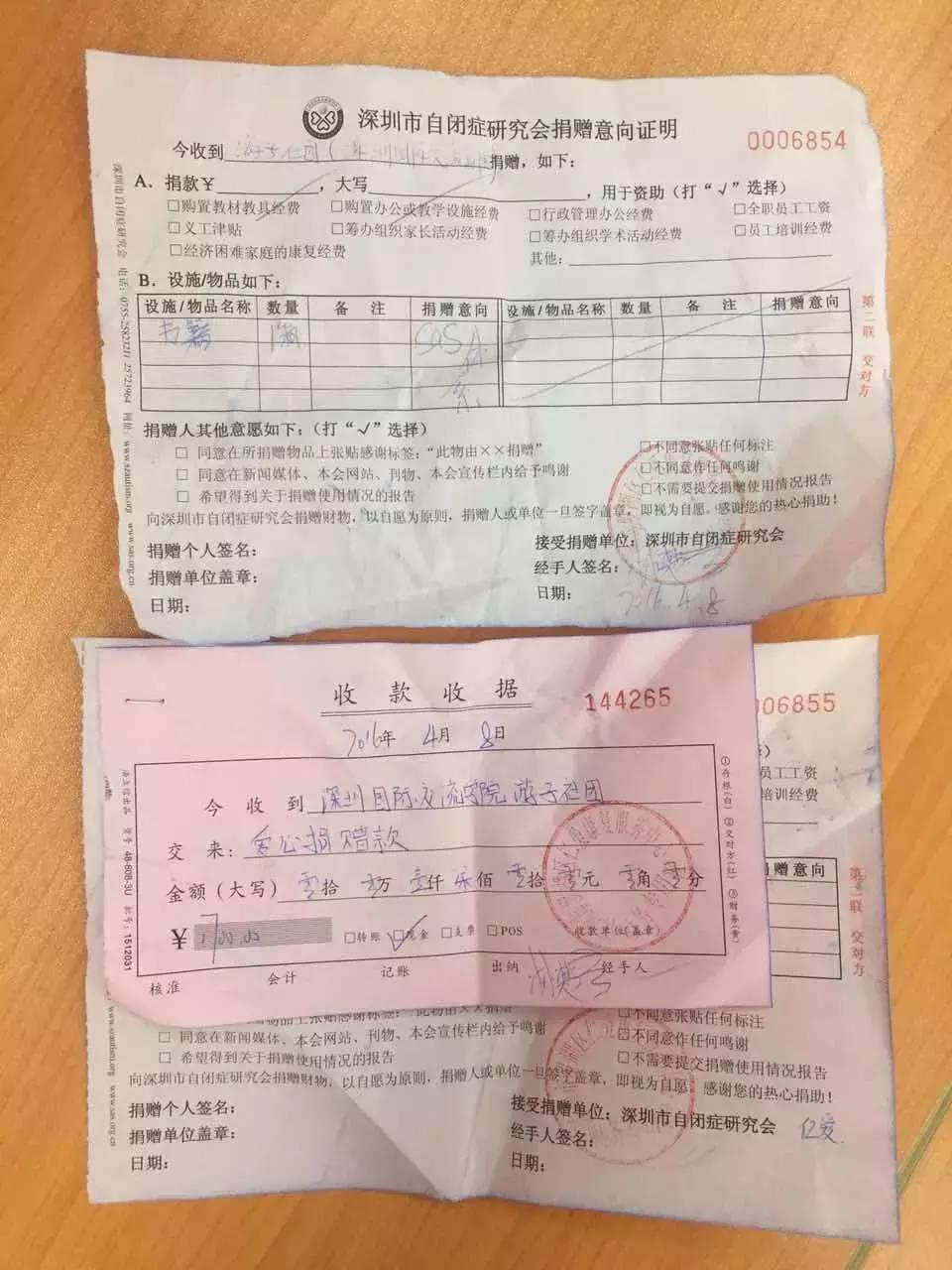 1700元的善款,游子选择用它来为贫困自闭症儿童家庭的学费支付,出一份绵薄之力。在康复中心有一对亲兄弟----这个家庭,夫妇二人都不是深圳户口,也就无法获得政府的任何补助;丈夫作为一个水泥匠人,也只是从事着低廉的体力劳动工作,却要承担两个自闭症孩子一月6000元的学费。但愿,我们给予的这些,哪怕只是,让这位父亲减少几小时的劳作、让这对兄弟多几天和自己的同类伙伴的相处,也足矣。