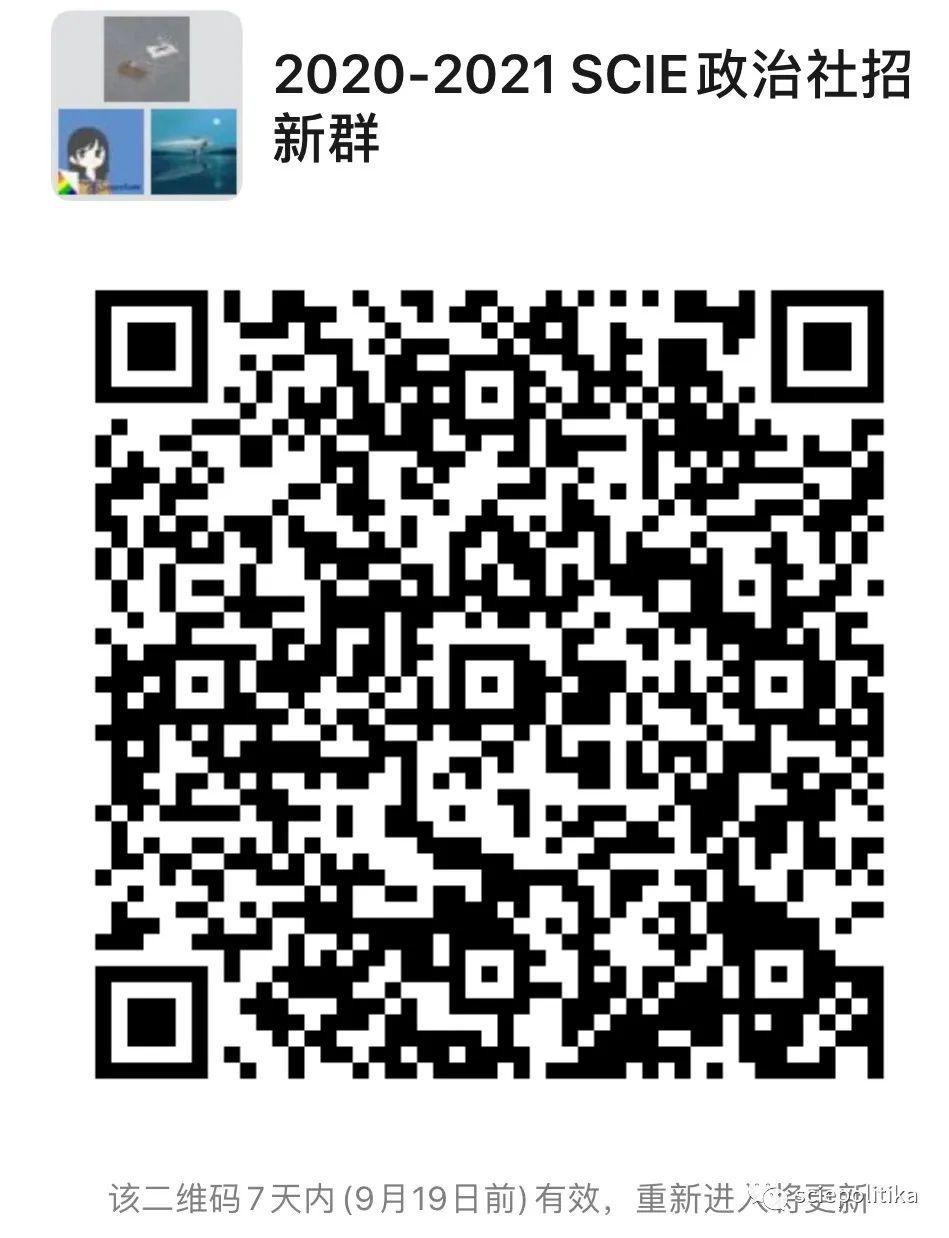 If the QR code of WeChat group is outdated, please add this WeChat, postscript "SCIE politics club + grade + English name".