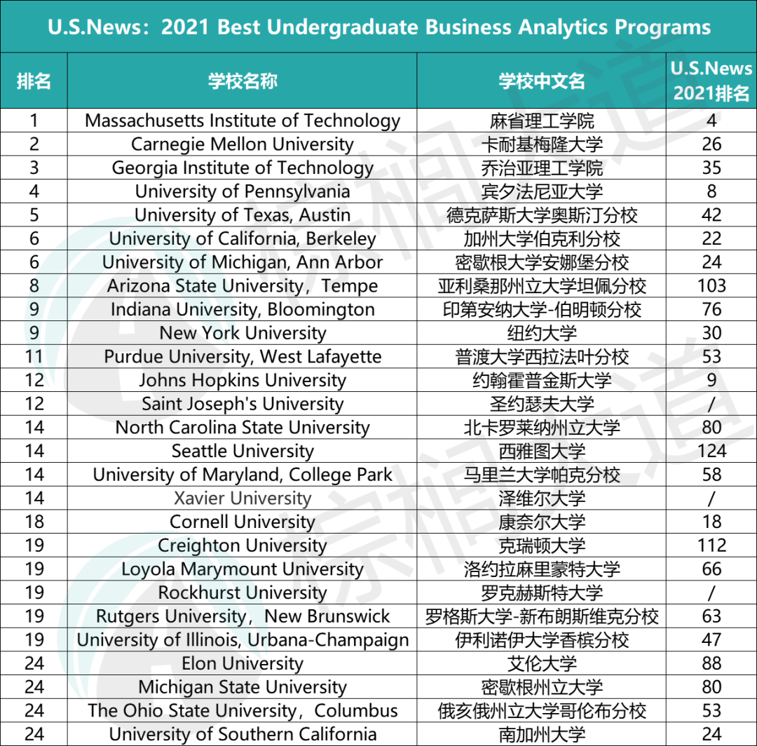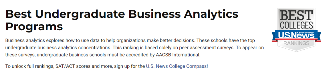今年,U.S.News发布了一系列排名,除了重头戏2021美国大学排名外,还首次发布了全美商业分析最佳本科院校排名(Best Undergraduate Business Analytics Programs)!