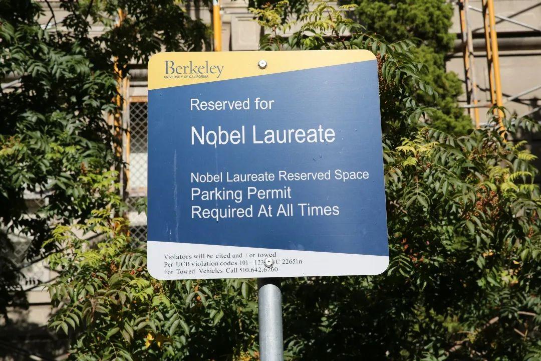 伯克利分校诺贝尔奖得主专用车位提示牌
