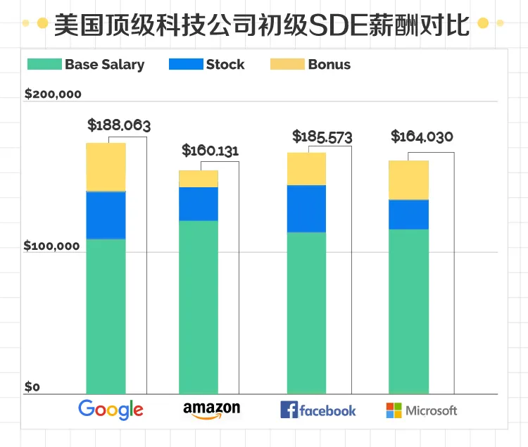 在美国顶级科技公司,做一名初级的Software Development Engineer,薪酬也能达到16万美金以上。