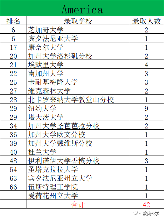 美国大学毕业生人数减幅较大,总录取54人(2019年总录取78人)