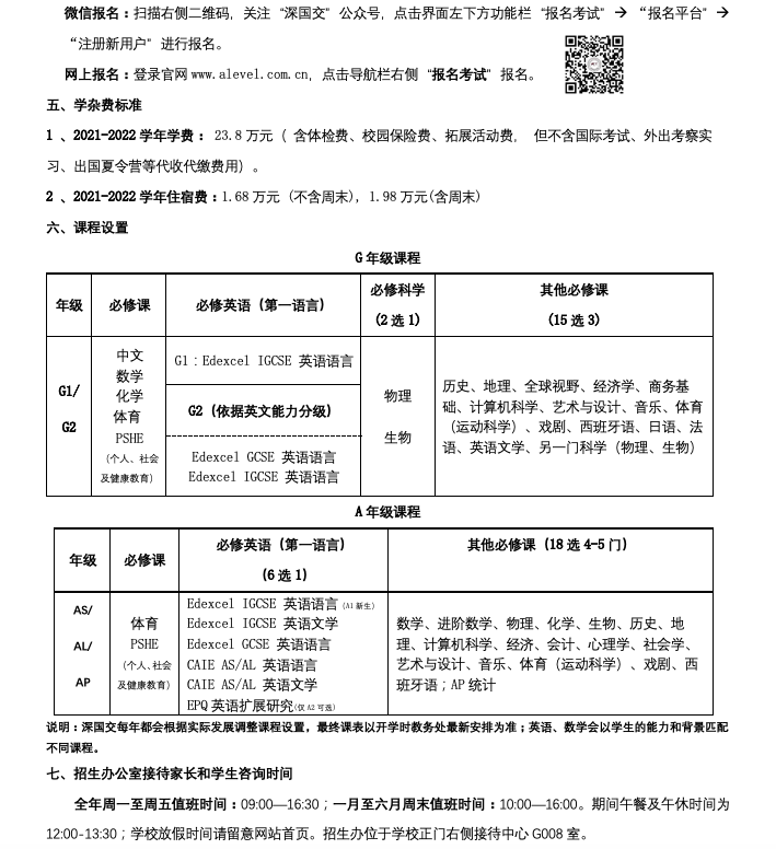 1、2021-2022学年学费:23.8万元(含体检费、校园保险费、拓展活动费,实习、出国夏令营等代收代缴费用)。但不含国际考试、外出考察实