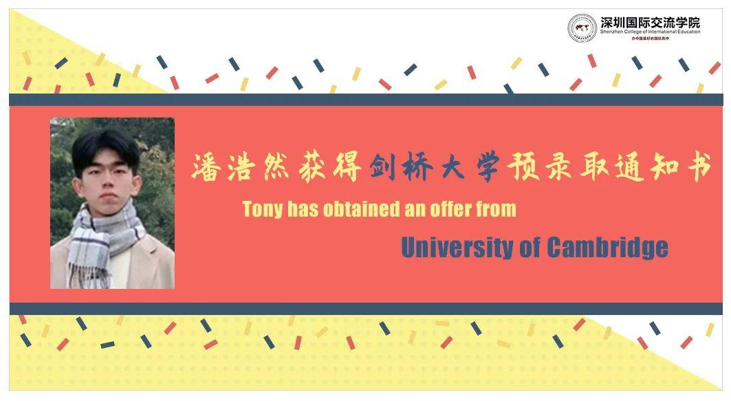 周玥含,王若尧,王昱超,揭伊若,熊欣,周云昊,刘行健,何叶,周科岑,童心宇,胡越,刘铠嘉,白若昕,钱振天,潘浩然,周文扬,庄知远,雍莳之,余卓学共19名同学获得剑桥大学预录取。