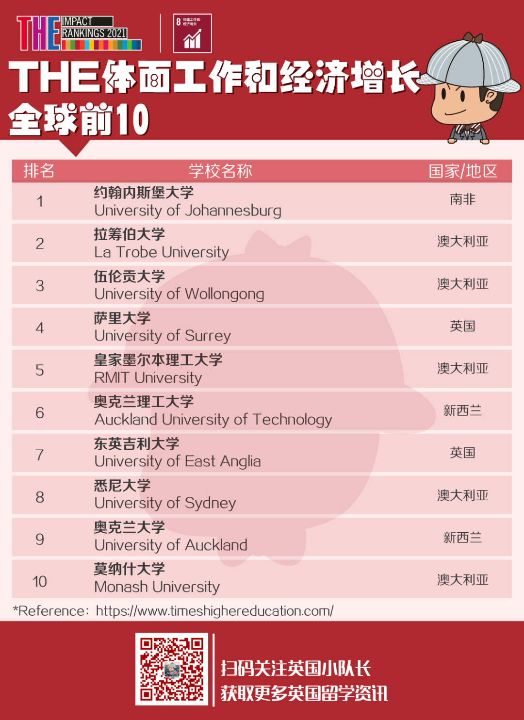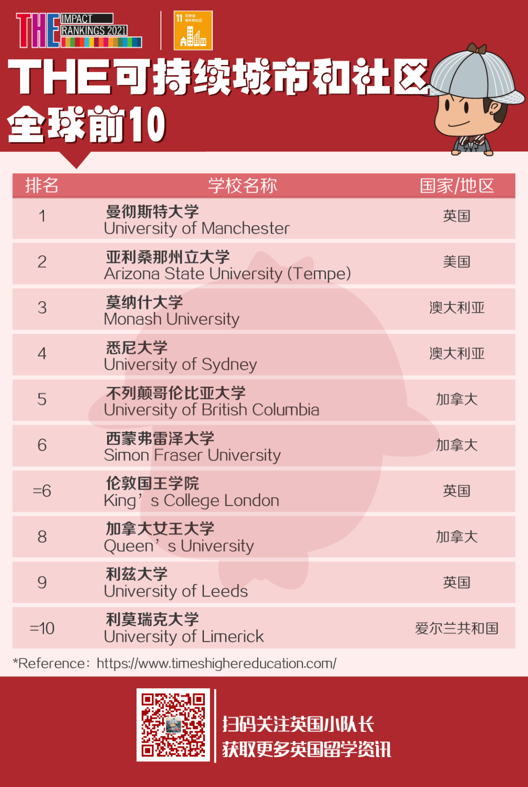 曼彻斯特大学(1)、伦敦国王学院(11)、纽卡斯尔大学(15)、利兹大学(16)、莱斯特大学(19)这5所大学冲进全球前20。
