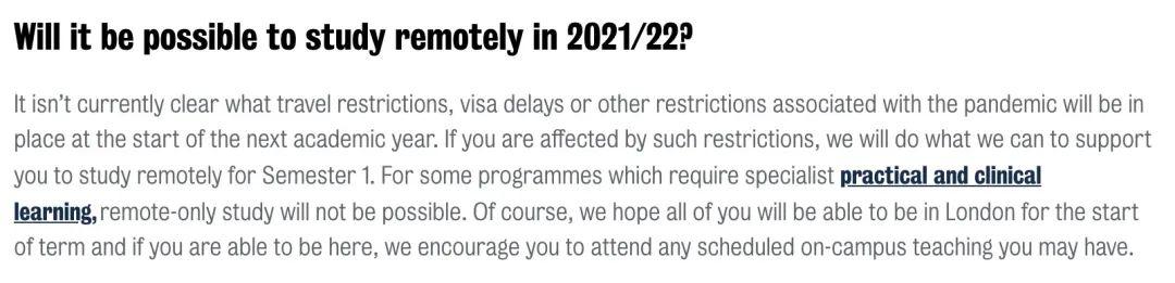 KCL官网信息表示,目前尚不清楚新学年会有哪些旅行限制、签证延误或其他限制。