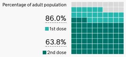 这意味着86%的人接种了疫苗,63.8%的人完成了两次接种。