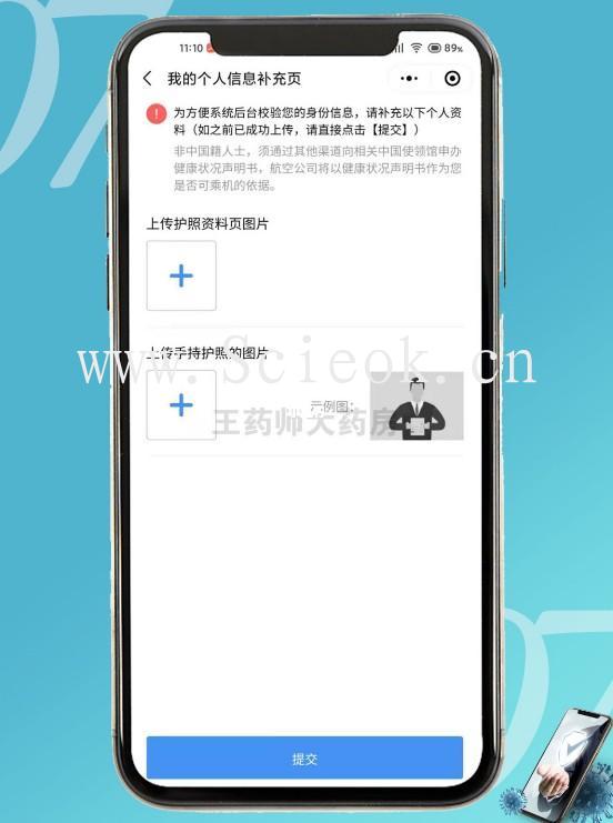 第二栏需按照示例图,手持护照并拍照上传(一定清晰的拍到自己的上半身,以及护照首页的照片、个人信息等内容)