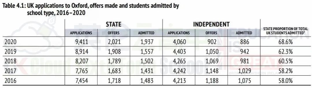 2020年,牛津录取的公立学生占比68.6%(62.3%),是历史最高纪录。