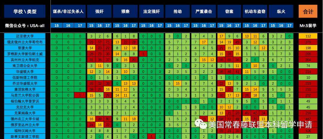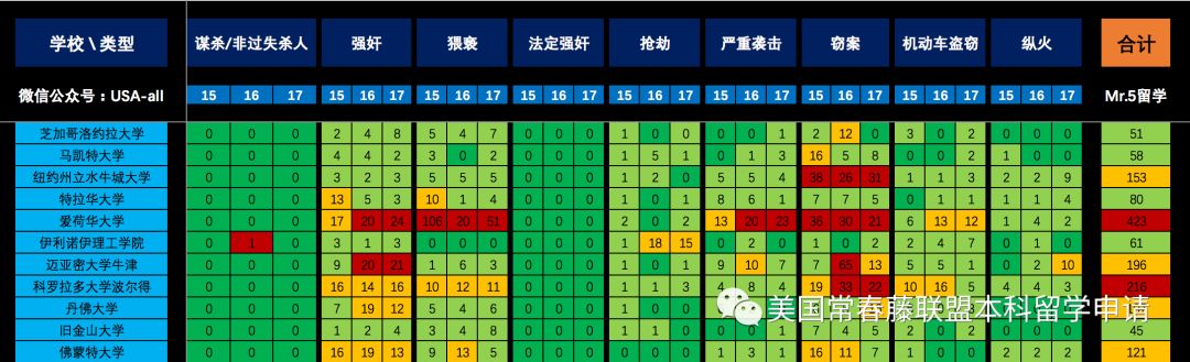 常年占据排名榜首的哈佛大学,“强奸”和“窃案”两项犯罪连续3年全线飘红(均超过20起/年)。