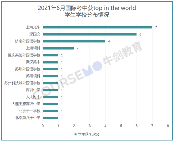 我们统计了获取奖项的学生所在学校分布发现——
