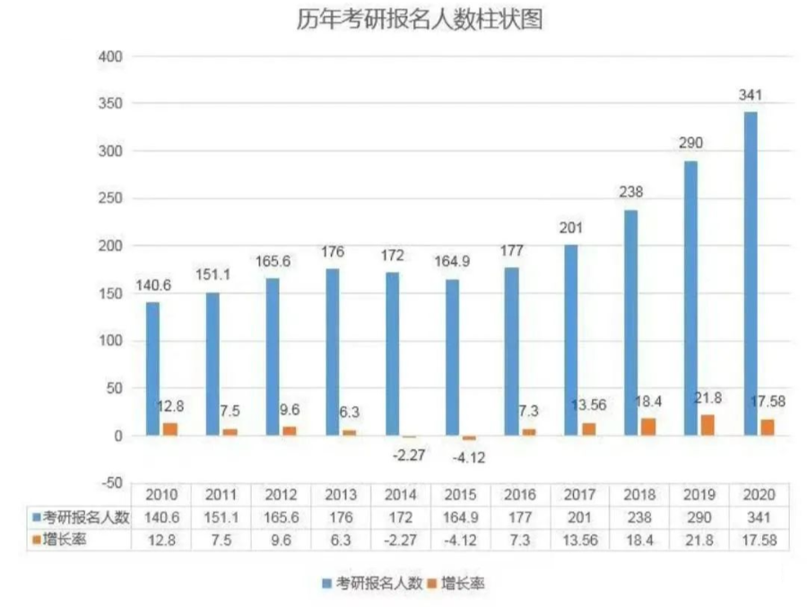 这意味着2022年考研人数比2021年增加80万——2021年考研人数为377万。