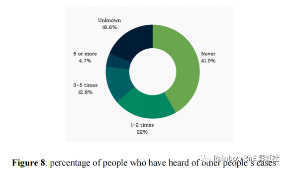 此外,性骚扰的发生很可能因受害者不愿将自己的案件告知他人而进一步恶化,因此难以得到处理和预防。调查发现,41.9%的受访者不知道在他们的学校发生的性骚扰案件,而之前的数据显示,至少有三分之二的高中生曾经遭受过性骚扰。