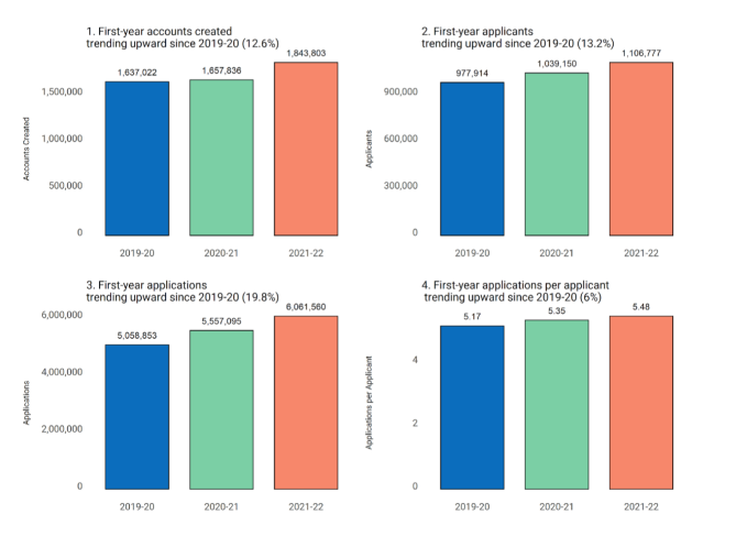 近期,Common App发布的一份最新报告显示,截至2022年1月17日,与过去两年相比,2021-2022年申请季,美国大学申请人数继续反弹。