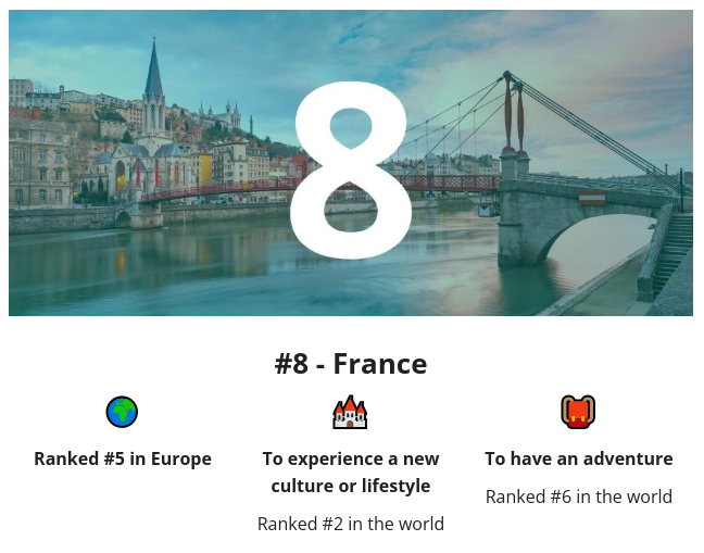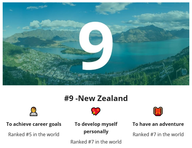 由于这份排名的依据是学生们在选择目标留学国家时最看中的因素,因此它并不像QS排名更专注学术,而是侧重于学生留学的体验感。