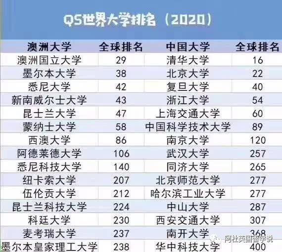 1 英国,中国,澳洲和新西兰位于世界前一百的学校