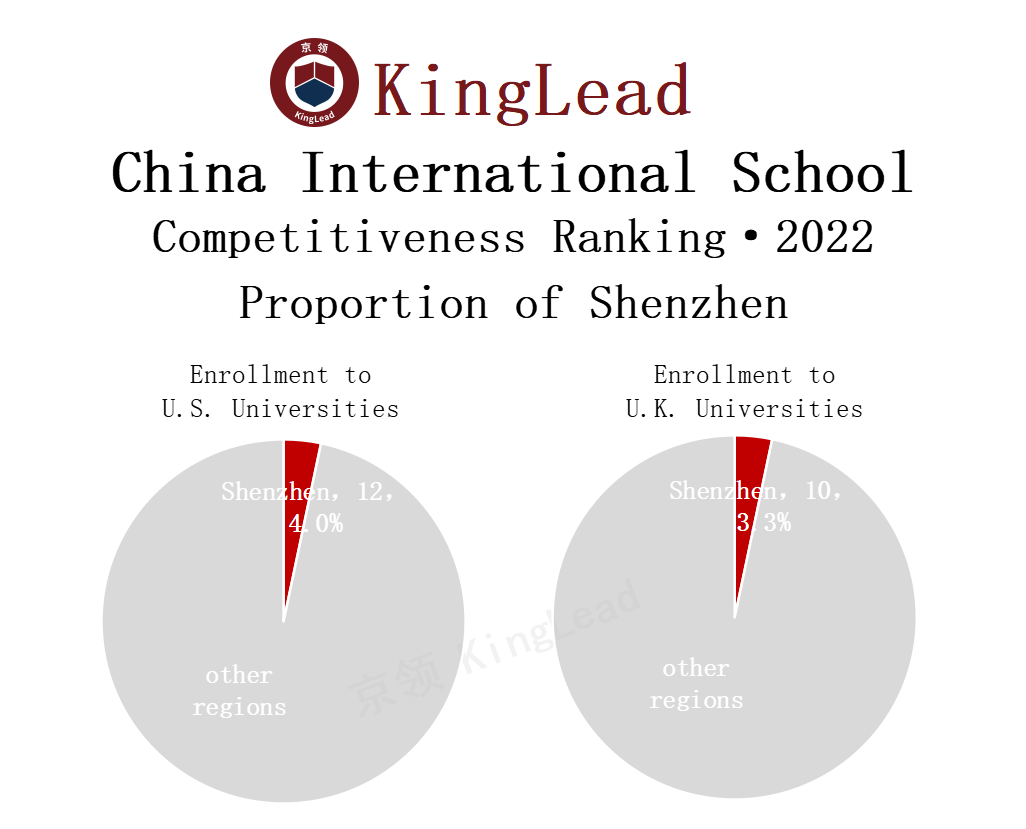 According to this ranking, there are 12 schools in Shenzhen selected in the direction of Enrollment to U.S. Universities, which accounts for 4.0% of the total number of schools in the ranking. There are 10 schools in Shenzhen selected in the direction of Enrollment to U.K. Universities, which accounts for 3.3% of the total number of schools in the ranking, of which one school ranks among the Top 3 of the China ranking.