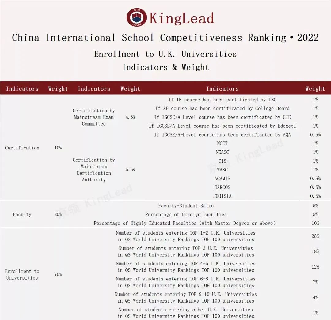 Based on the available objective data and the exclusive data of KingLead Research Institute, this ranking carries out quantitative modeling, comprehensive weighted scoring and rating from the three core dimensions of certification competitiveness, teacher competitiveness and enrollment competitiveness. The specific index weight system is as follows.