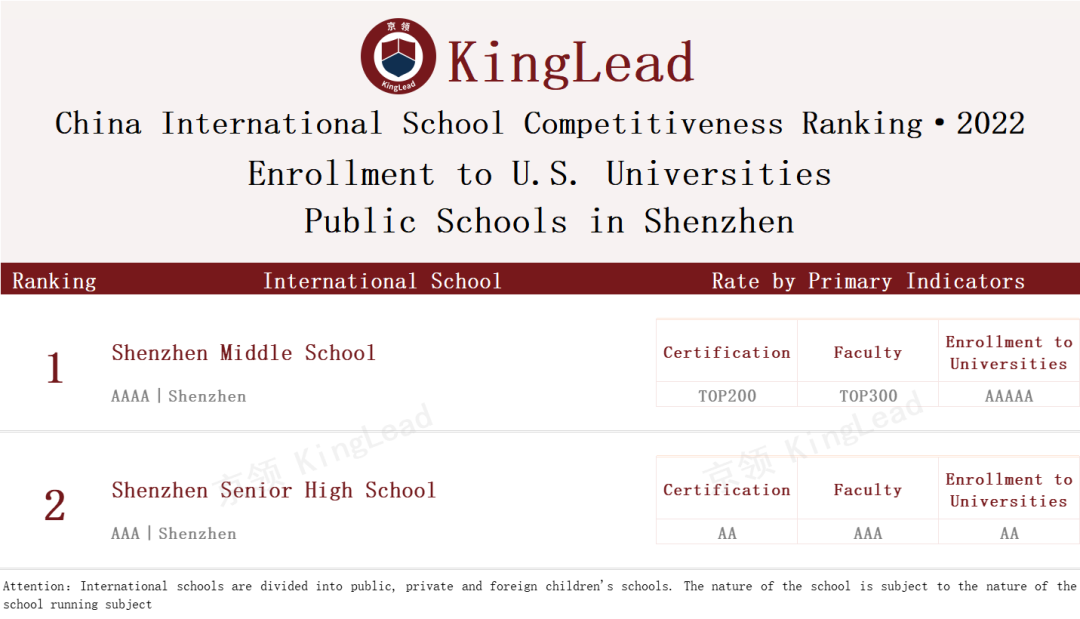 In the direction of Enrollment to U.S. Universities, the public schools in Shenzhen are Shenzhen Middle School and Shenzhen Senior High School.