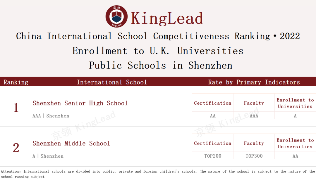In the direction of Enrollment to U.K. Universities, the public schools in Shenzhen are Shenzhen Senior High School and Shenzhen Middle School.