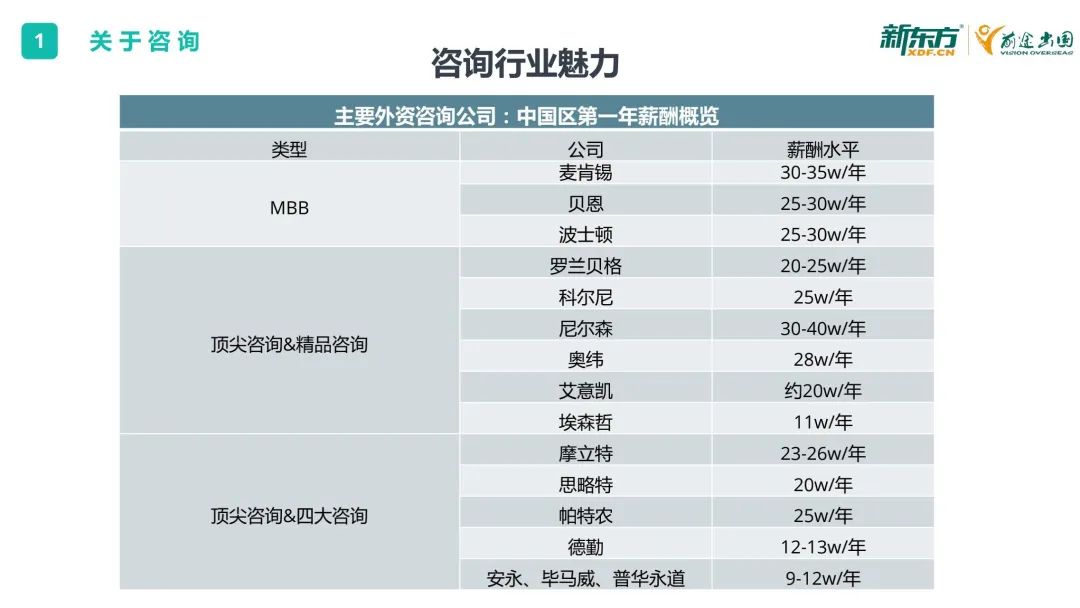 聊咨询行业当然离不开薪酬这个话题,这里小编也整理了各类咨询公司在中国大区第一年的薪酬概览,供大家参考。