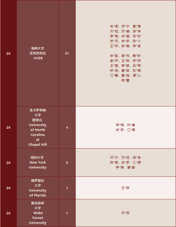 (范德堡、华盛顿大学圣路易斯、莱斯、圣母、加州洛杉矶、加州伯克利、卡梅等)