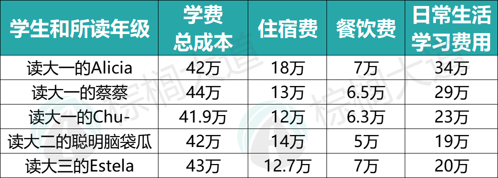 以上5所大学的学杂费用和日常花销都在大家可接受的范围内,且与100万的留学花销相距较远。