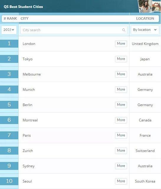 2019年7月31日,QS全球教育集团发布了最新全球最佳留学城市排名。前三位较去年没有发生变化,分别是英国伦敦、日本东京和澳大利亚墨尔本。