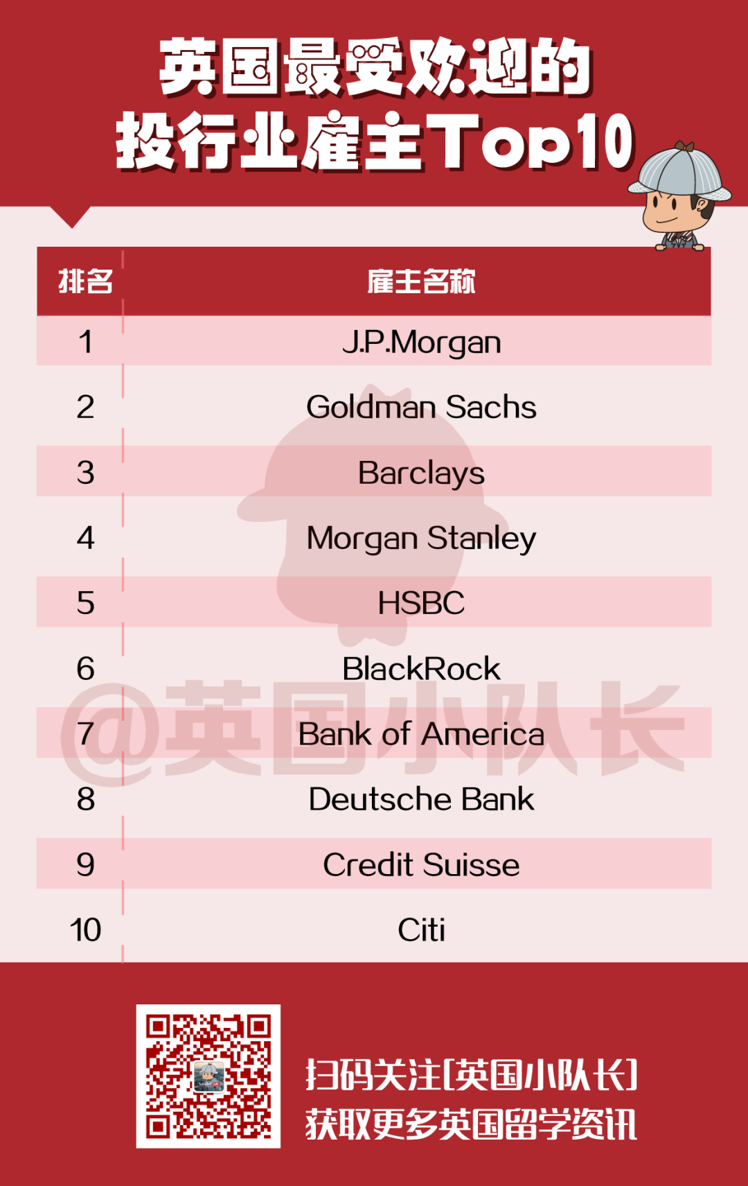 今年咨询类公司的排名变动不大,业界大佬麦肯锡、埃森哲、波士顿咨询保持在5-7名。⏩McKinsey/Boston:保持不变,分列6/7今年英国咨询行业不仅机会多多,而且据报告显示,毕业生起薪高达£47,500 (Neton)!银行类公司排名变化较大,英格兰银行上升4位,成为英国最受欢迎的银行业雇主。伦敦证券交易所 (London Stock Exchange Group) 与第一资本 (Capital One) 新上榜就排在了行业第8与第10!⏩Bank of England:上升4位,排名第1银行、保险与金融服务行业也是需求量相当大的领域,比去年增长了18.9%。毕业生薪酬虽然比投行与咨询低一些,但也非常吃香。投行类公司排名也比较稳定,基本在上下1位徘徊。摩根大通、高盛与巴克莱依旧保持在Top3。前10里,只有BlackRock一家投资管理公司上榜。⏩Morgan Stanley:上升1名,排在第4今年摩根大通与巴克莱还为应届生分别提供7万英镑、5万英镑的年薪,这薪资水平谁不爱呢~80%的公司的排名都没有变动。Top10中除苹果与西门子外,多数都是软件/服务提供商/零售商。近年来,科技行业的发展速度“势如破竹”,人工智能、元宇宙等都有很好的发展前景。而科技行业的公司又非常注重工作与生活的平衡,在年轻人中更吃香!比如,在Glassdor 2021年工作与生活平衡最好的英国公司中,科技公司在前10中就占据了6家!未来想在英国入职科技公司的,可以看看科技大厂最爱招哪些英国大学~
