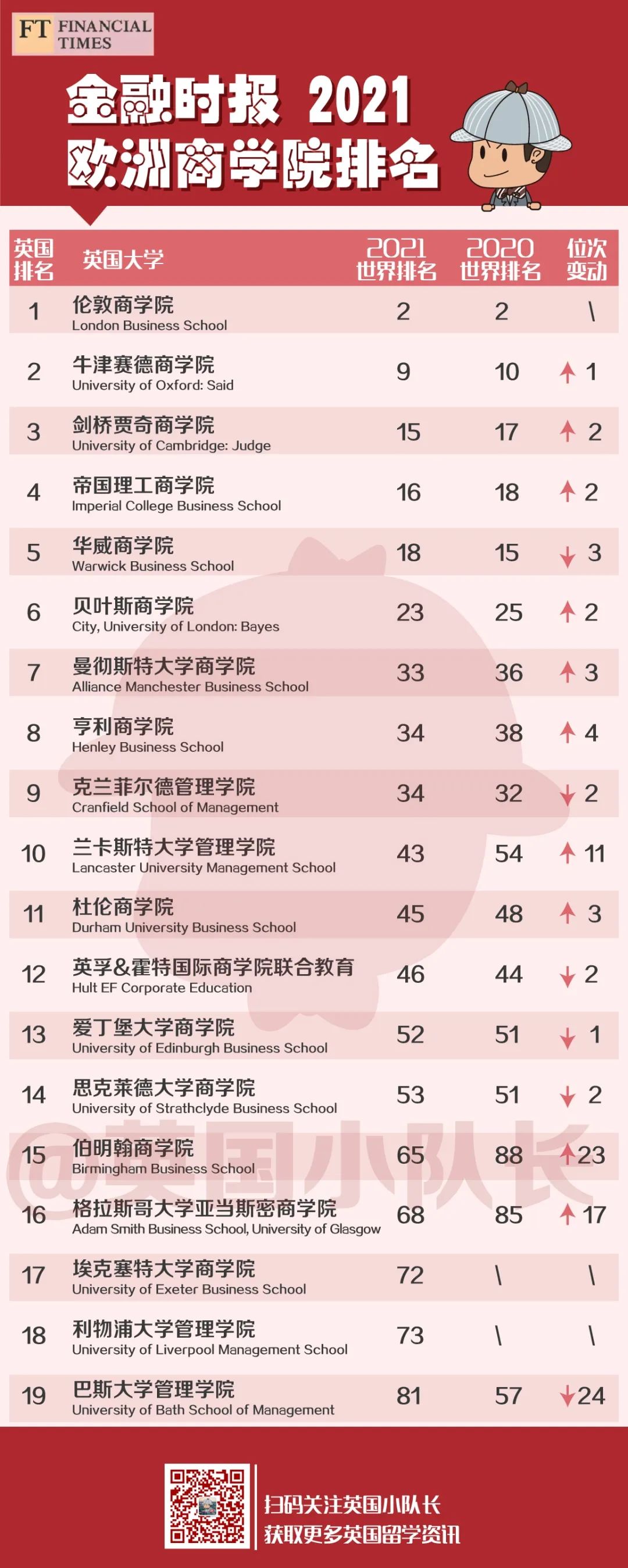 2020年没上榜的“埃克塞特商学院”和“利物浦管理学院”,也在2021年加入排名。