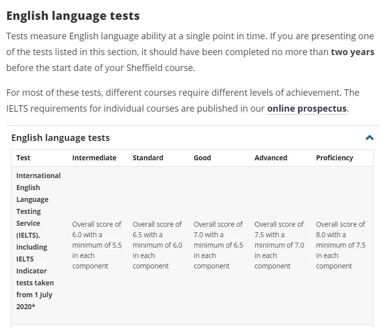 最后放一下谢菲的雅思申请要求