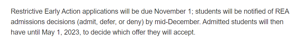 这次2022-23申请季度的EA政策更新意味着EA申请人既能享受到较高成功率的好处,又能比RD申请人提前约一个多月知道录取结果。