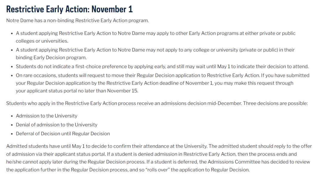 如果学生在REA截止日(11月1日)之前提交了圣母大学的RD申请,也可以在11月15日前要求将申请轮次从RD改成REA,但这种情况很少。