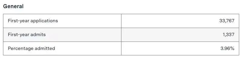 2022年,哥伦比亚大学从60377份入学申请中录取率了2253人,录取率降至新低3.73%,也是Top20中唯二录取率低于4%的学校(另一所为哈佛大学)。