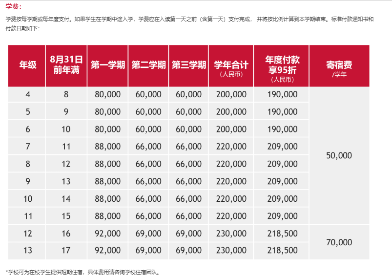K1(3岁班)-12年级招生时间:建议在1-3月报名,通常申请者的考试时间为3-4月。