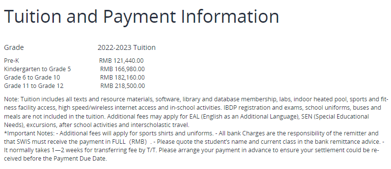 幼儿园学费如上图,中小学校区学费按年级呈阶梯式增长,预计22-30万/年。