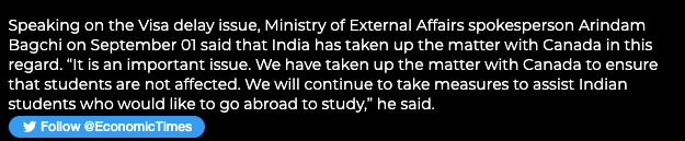 印度媒体9月2日报道:印度当局与加拿大沟通,让印度学生尽快拿到签证,及时去加拿大留学