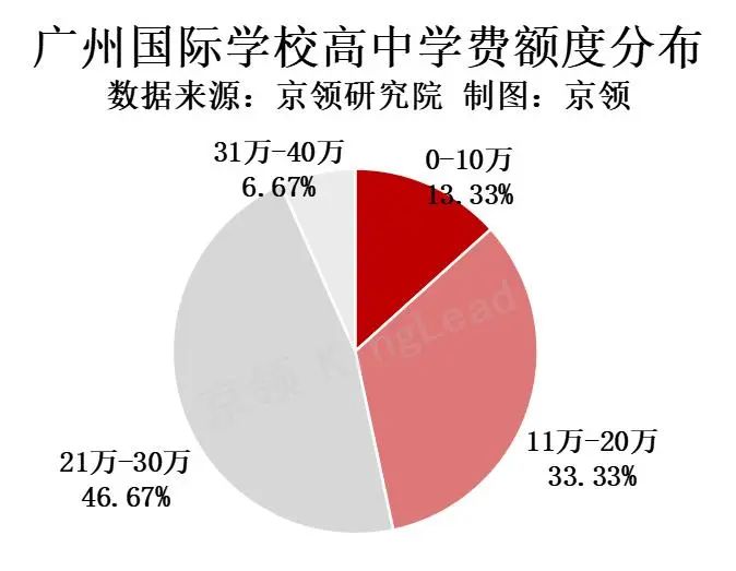 据京领研究院统计,截止到2021年8月,广州国际学校高中学段的学费标准从每年48,000元人民币到每年320,000元人民币不等。