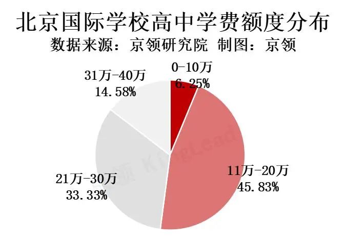 在北京,大部分国际学校高中学段的学费集中在11万-20万元人民币,学费平均值为约20万元人民币,大于全国国际学校高中学费平均值。