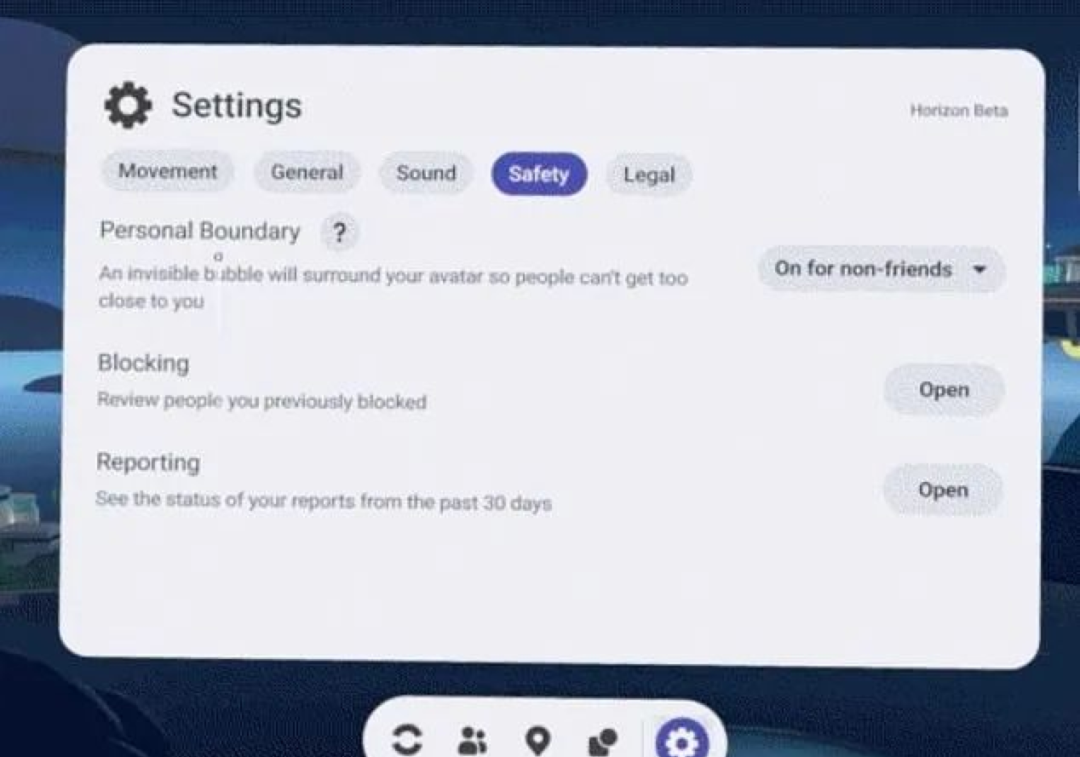 在《地平线世界》中,陌生人个人边界默认为四英尺,以便引起不必要的互动,我们不建议对不认识的人关闭该功能。”