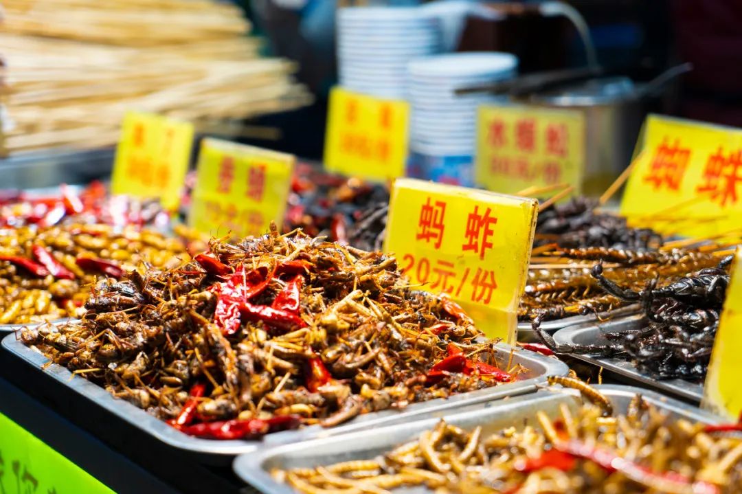 小串大火猛烤到五分熟,锁住食材的水分,再刷上酸梅酱,撒上辣椒、孜然,这味道你不亲口尝尝,真想不出来。烤猪眼,烤黄喉、烤鸡屁股、烤蛇肉、烤鹌鹑、烤掌中宝、烤⽜欢喜……这都是入门级别。南宁烧烤少不了各种看着吓人小虫子们,那就不完整了。作为过来人,旅行菌可以负责任地说,战胜心里那道坎,这玩意真的挺好吃的。
