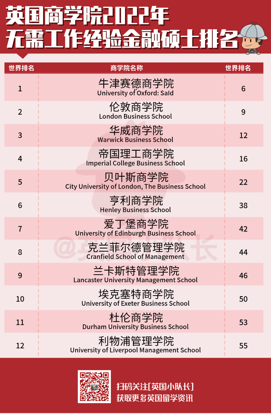 此排名分为两个部分:Pre/Post Experience,即无需工作经验与需要工作经验的金融硕士排名。